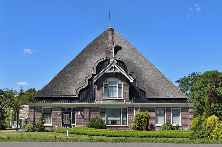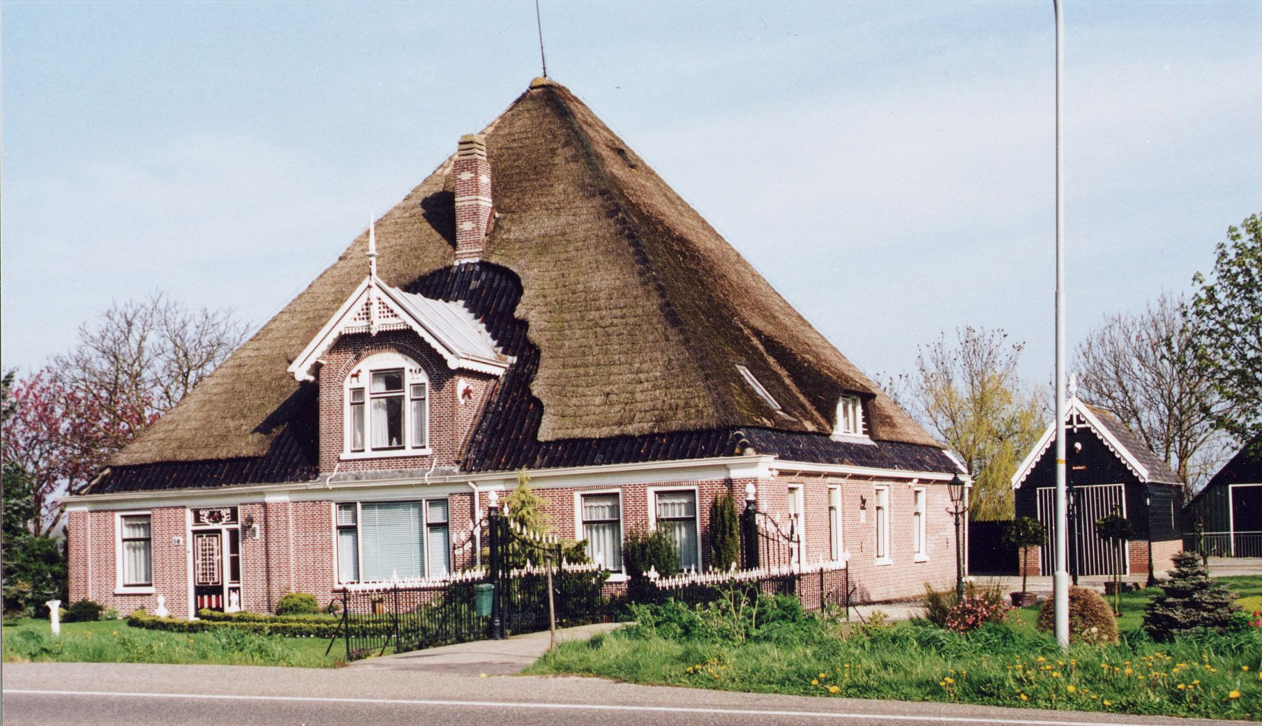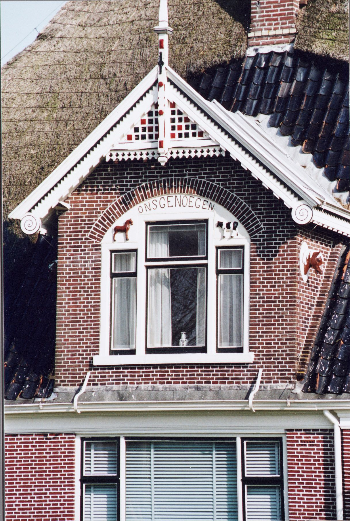 Topgevel met naam boerderij en afbeeldingen van koeien en paarden.