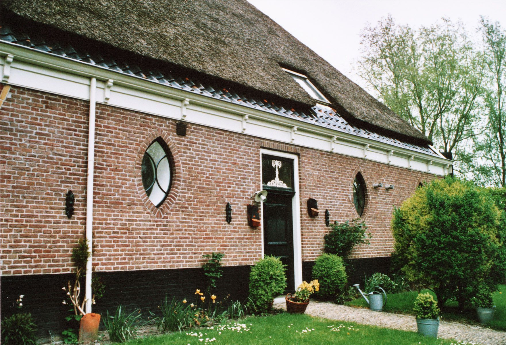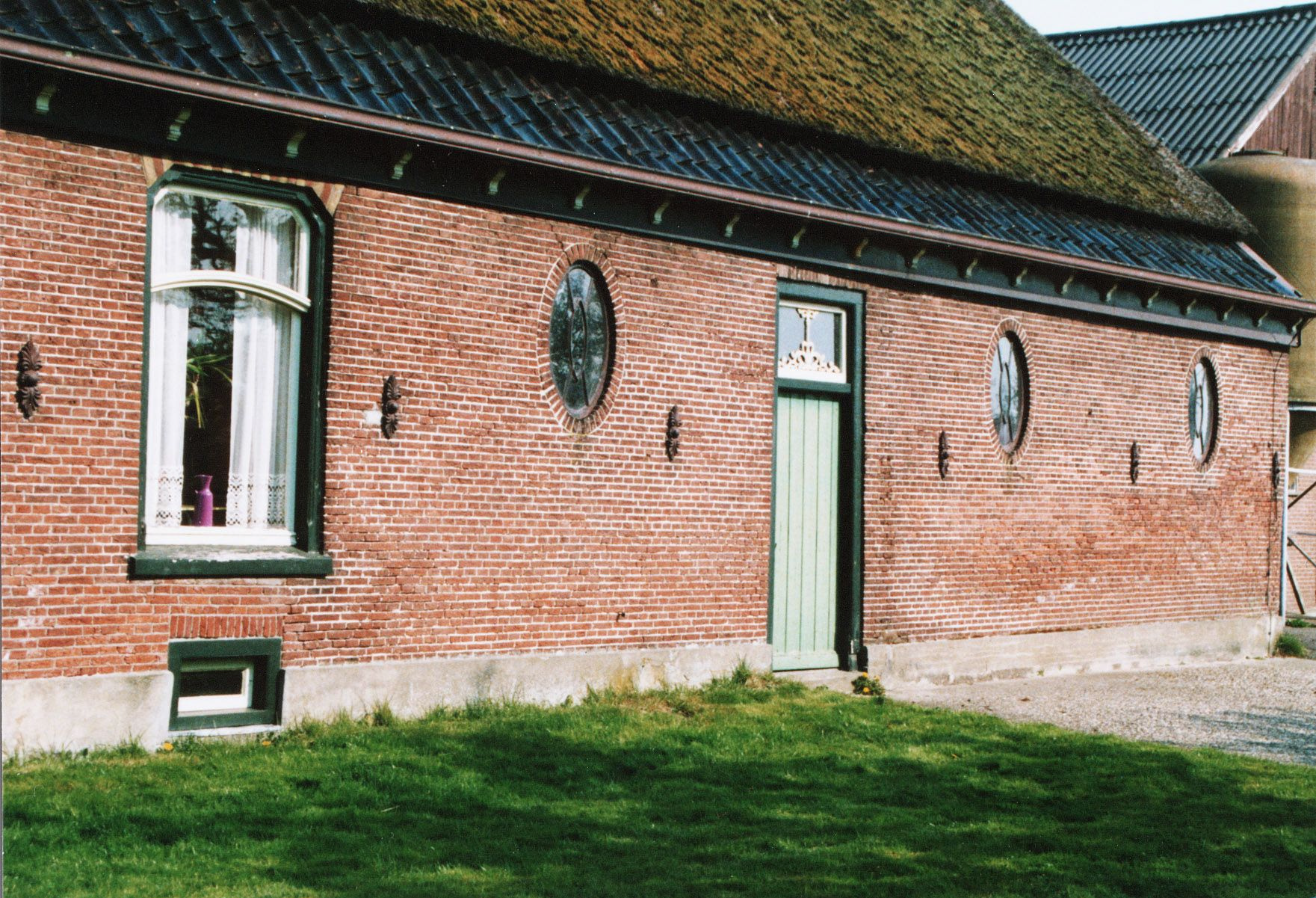 Ovalen darsramen, boogramen, een ingemetselde steen met jaartal.