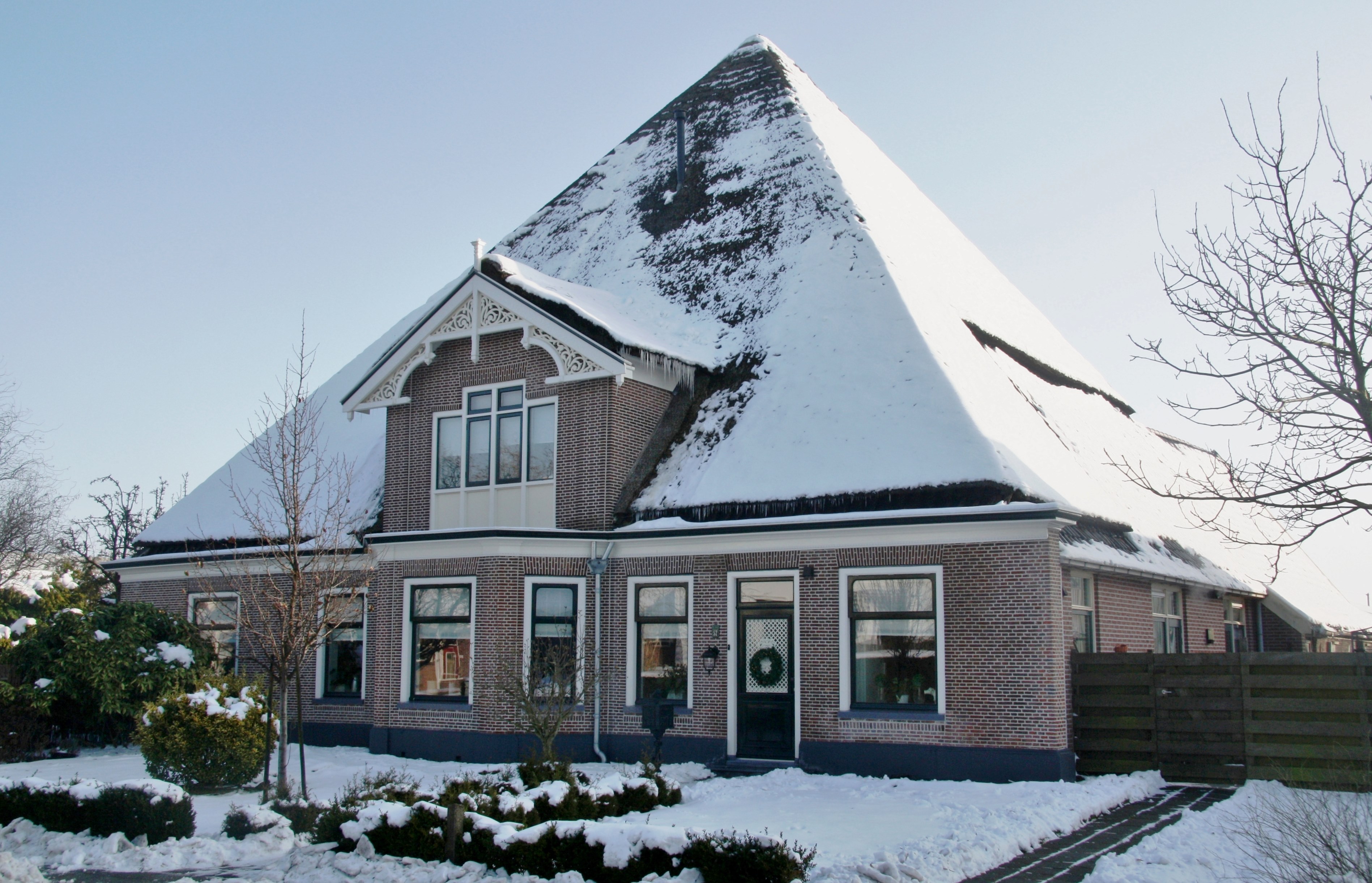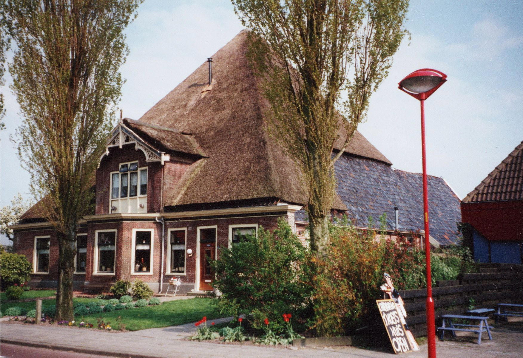 Gekeerde Westfriese stolpĀ metĀ pannengedekte staart. Stenen topgevel met erker, windveren en makelaar.