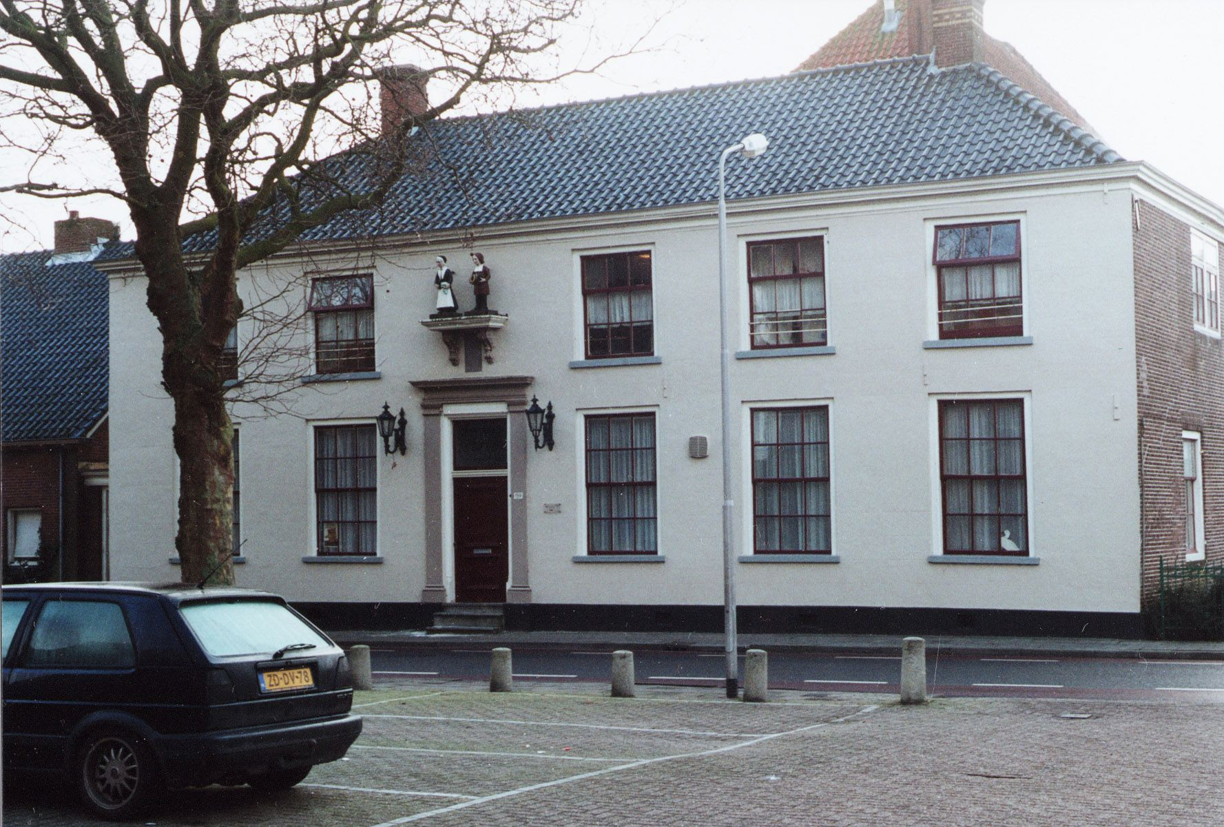 Onderdeel van weeshuis. Boven de omlijste ingang bevinden zich twee 18e eeuwse, houten beelden van weeskinderen. Boven de poort staat een schildhoudende leeuw en in zijgevel zit een gevelsteen uit 1575.