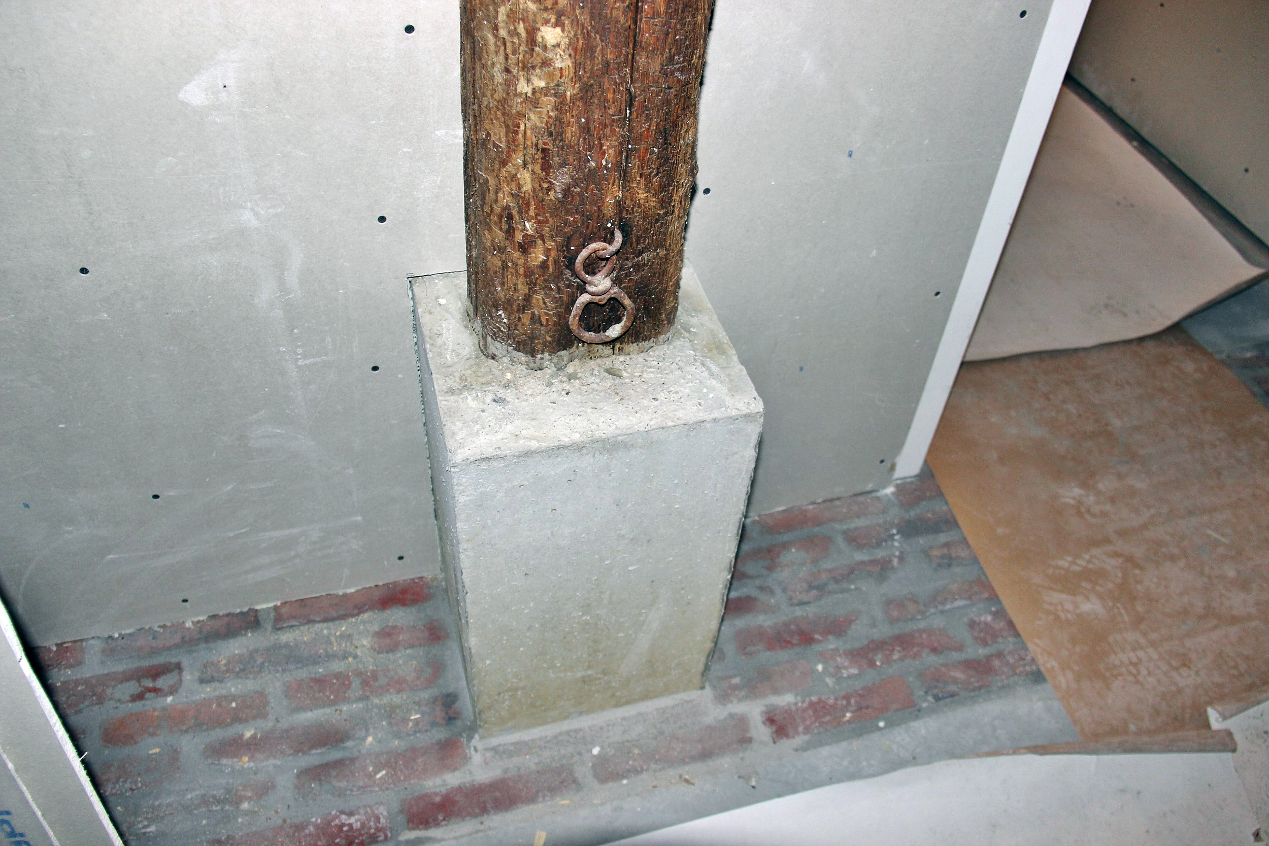 Sinds 2014 zijn Edwin en Martien aan de slag om hun bevlogen plan voor een herbestemming als appartementen- en vergadercomplex, dat indertijd de door de provincie uitgeschreven prijsvraag voor herbestemming won, te doen slagen. Geen sinecure als je bedenkt dat het dak helemaal ‘onder de asbestplaten zat’ en de constructie bijna op instorten stond. Maar beiden zijn uit het goeie stolphout gesneden en volgen hoofd en hart, daarbij gesteund met lovenswaardig opgestelde tekeningen van AG architecten uit Haarlem. Een nieuwe indeling met negen appartementen met eigen toilet op de begane grond en vergaderruimten boven, een gemeenschapsruimte, een keuken, een speelkamer maakt deze herbestemming op voorhand tot een succes. Lichttoetreding is op inventieve wijze opgelost, door het gebruikmaken van lichtstraten in de vorm van dakspiegels in de dakvlakken van de korte gevels. Maar eerst moest de asbest verwijderd en afgevoerd, de houtconstructie zwaar hersteld, een nieuwe strokenfundering (onder alle muren en onder de twee lange rijen vierkantstijlen) gelegd, alle dakvlakken vernieuwd en geïsoleerd, het verdwenen voorhuis herbouwd, alle rotte onderkanten van de vierkantstijlen vervangen en voorzien van hoge betonpoeren. De wierschuur draait straks energieneutraal met een warmtepompboilerinstallaties en (zwarte) zonnepanelen op het met zwarte pannen gedekte dak van de voormalige losse grupstal. Edwin praat en wijst onverminderd enthousiast voort en zegt dat een dergelijk inspanning niet gerealiseerd kan worden zonder subsidie, niet zonder eigen vermogen en niet zonder 200% inzet. Het streven is om april 2017 klaar te zijn. Dan is een ware parel als stolpjuweel herrezen uit de asbestbult die de wierschuur nog drie jaar geleden was. Details zijn genoeg bewaard gebleven, aan inventieve oplossingen zoals zes zwarte schuifdeuren die drie grote glaspartijen kunnen maskeren, is geen gebrek. Met moeite maken we ons los van de wierschuur en z’n hartelijke en gedreven eigenaren, met een uitnodiging om beslist nog eens terug te komen op zak. Hier hoort u meer van!